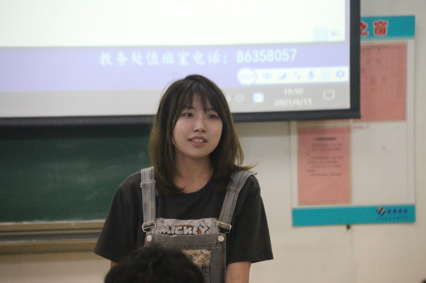 李天泽老师向答辩者们提出了自己的建议,她希望在答辩过程中同学们可以丢掉稿子,摆脱对答辩稿的依赖,以更自信的态度同评委们交流,在参与组织学生工作的同时保证自己的学习成绩,双管齐下,让学生工作成为自己大学生活中的另一个闪光点。