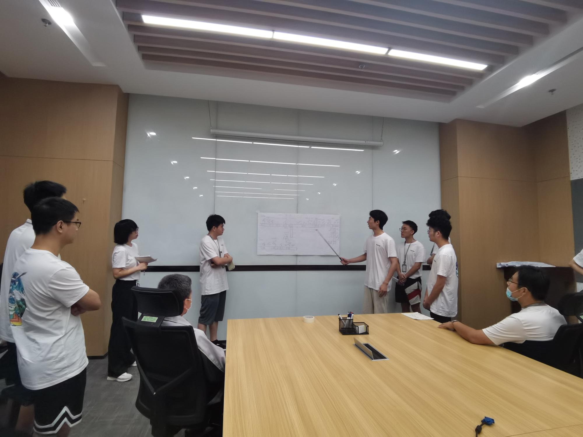 上午八点,营员们准时到达会议室后便展开了汇报前的最后准备。半小时的时间内,大家畅所欲言,积极发表自己对于设计图纸的建议并进行修正。随着指导老师的到来,便开始了各组的汇报工作。首先由组内推选的主讲人进行整套生产线工艺流程的介绍,对包括生产模式,小组分工,具体操作,指标参数等都进行了详尽的描述。随后两位指导老师根据每组各具特色的设计流程进行了专业性的点评,给出了宝贵的修改意见。最后,大家依照老师的指导补充完善了各自的图纸,进一步丰富了研究内容。