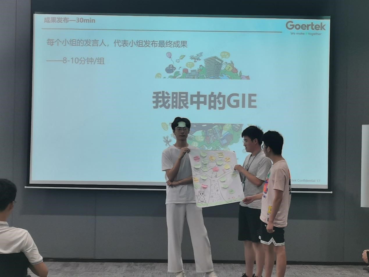 72886必赢欢迎光临歌尔暑期训练营经过两周多的实习实践迎来了最后一天的收官之日。训练营营员们一早来到歌尔培训室。按照计划安排,上午在歌尔培训师带领下进行团队共创活动。首先,经过智慧大比拼等一系列互动游戏,培训师与营员们营造了一种和谐欢快的氛围。后面就进入共创活动的主要环节-“我眼中的GRE”。培训师将营员们分为三组,在相互竞争下模式下,分组展开头脑风暴,讨论在GIE部门的感受和感想。讨论过后,由组长带领组员在图纸上绘制GIE部门的形象。各小组成员积极发挥聪明才智,用彩笔绘制出创意十足的GIE部门的形象。之后,各小组选派成员上台对本组的作品进行展示和讲解。经过所有成员的投票,最终选出优胜的小组并获得了纪念奖品。