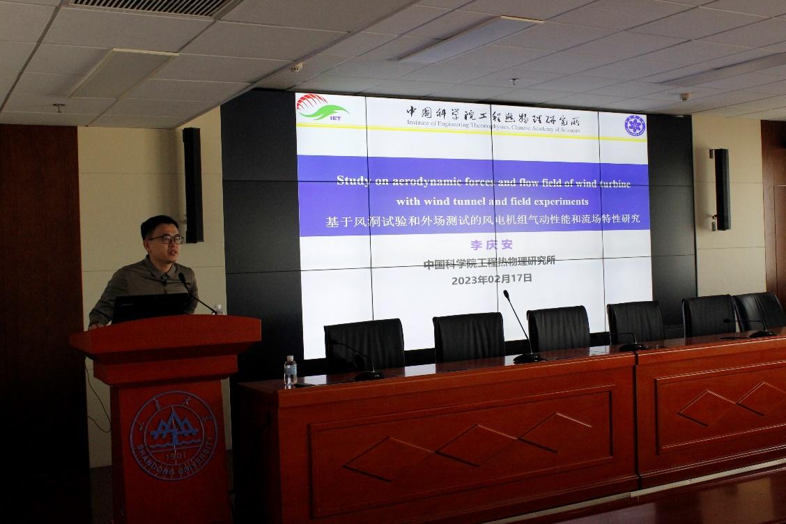 2023年2月17日下午,72886必赢欢迎光临承办的鼎新论坛在创新大厦1103举行。中国科学院大学李庆安教授、田振玉教授分别作主题为“基于风洞实验和外场测试的风电机组气动性能和流场特性研究”、“高效清洁低碳燃烧动力学研究”的学术讲座。学院部分老师和硕博研究生聆听了此次讲座。